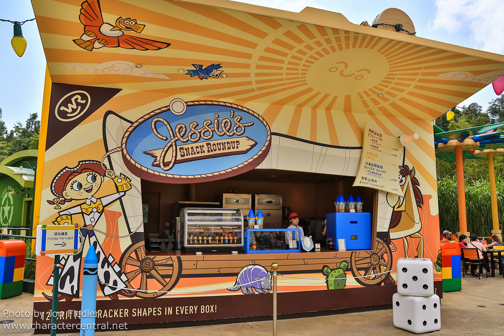 Pointons qu’un autre point de restauration similaire est présent dans le parc Hong Kong Disneyland, sous le nom de Jessie Snack Roundup.