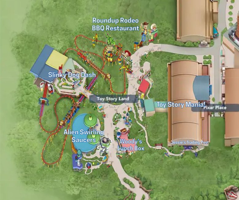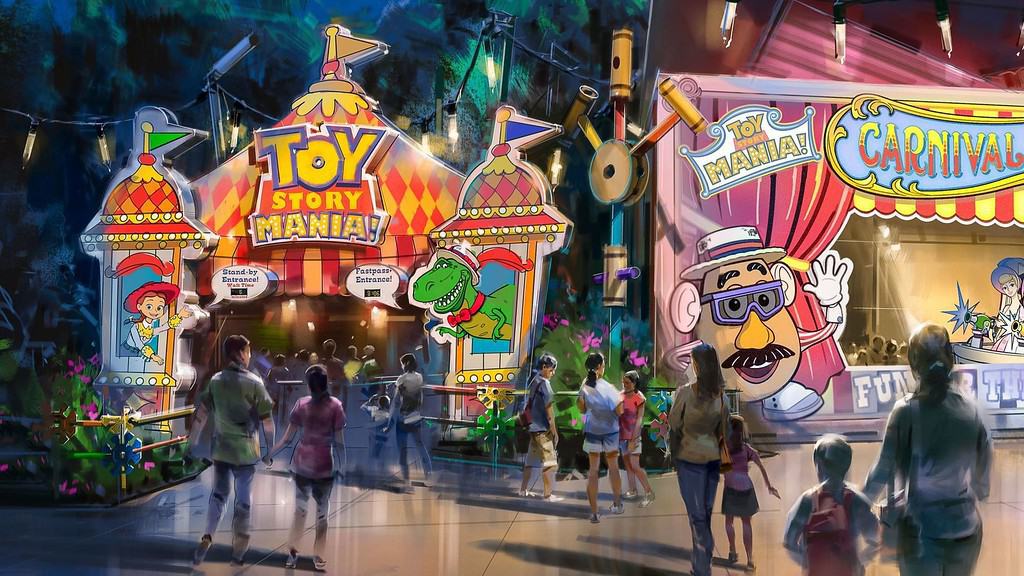 L’attraction Toy Story Mania!, inaugurée en 2008, était précédemment située dans le land Pixar Place (maintenant Pixar Plaza) et portait le nom de Toy Story Midway Mania!. Lors de la construction de Toy Story Land, son entrée a changé de place pour se relocaliser dans le nouveau land, et son nom a abandonné le mot Midway.