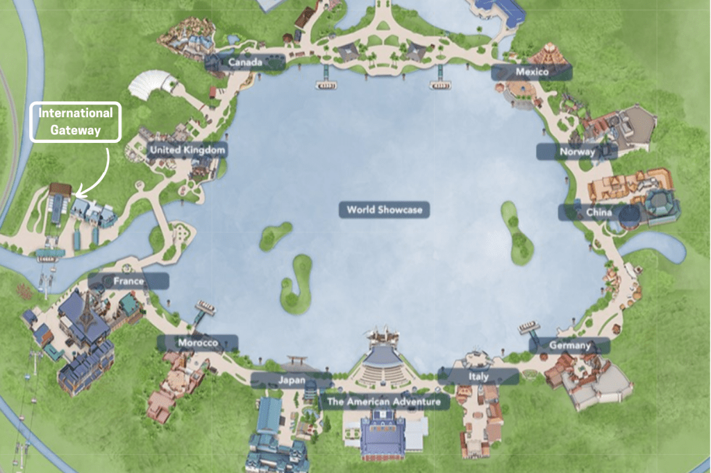 Ce Skyliner possède une station à EPCOT, située dans le World Showcase. Les visiteurs sont amenés à une des entrées du parc : International Gateway, située entre les pavillons de la France et de la Grande Bretagne.
