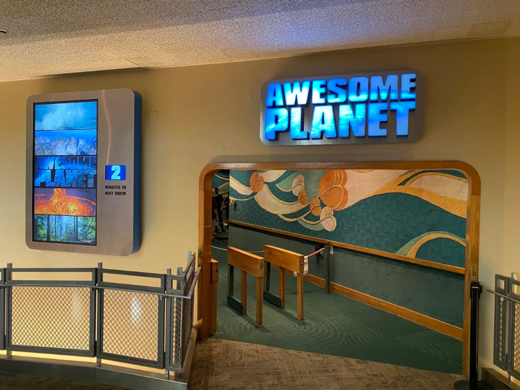 Awesome Planet, accessible depuis le 17 Janvier 2020, dure 10 minutes et explore la beauté spectaculaire et la diversité de la planète, avec des effets spéciaux de vent, senteurs et eau. Il explique l’histoire de la vie sur la planète et pourquoi il est important d’en prendre conscience et, de ce fait, la protéger.