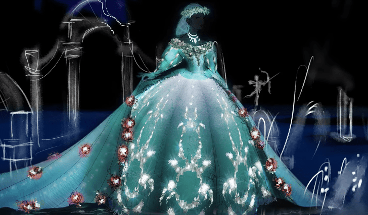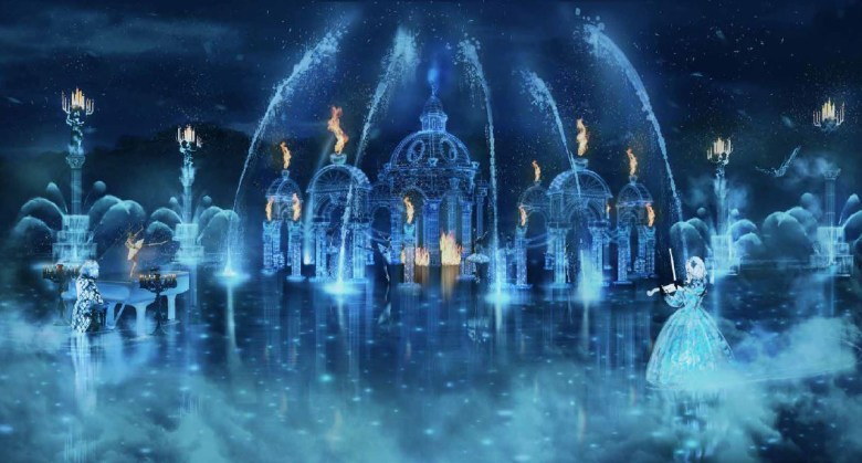 Inspiré également de l’époque romantique de la fin du 19ème siècle, nous avons droit à une féerie d’eau, de lumières et de feu avec des costumes éclairés grandioses (au nombre de 80). Ce spectacle est composé de 30 acteurs et cascadeurs, (2 fois plus que l’ancien spectacle) et dure 30 minutes. La musique a été interprétée par les sœurs Camille et Julie Berthollet, jeunes virtuoses.