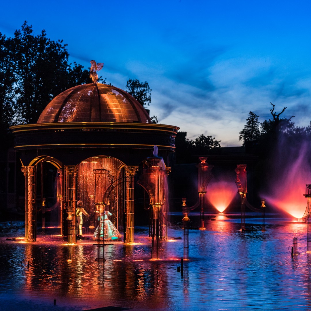 Avec des jeux de lumières, des effets d’eau et de feu, 15 acteurs et des musiques classiques retentissantes, vous plongiez dans le romantisme du 19ème siècle aux côtés des personnages de la Muse violoniste et du Pianiste virtuose. Suite au grand succès rencontré auprès des visiteurs, le parc n’a cessé de l’améliorer avec des techniques plus sophistiquées durant ses 10 années de représentations.