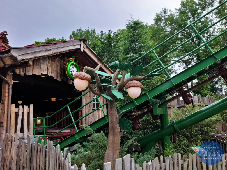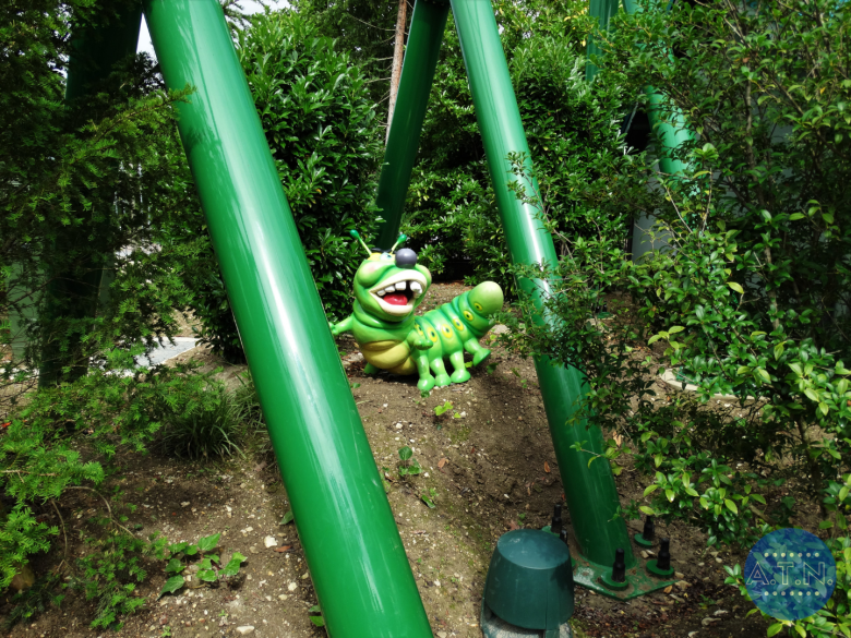 Fun Fact : Noisette Express n’oublie pas l’attraction La Chenille, qui a quitté le parc fin 2019, et lui offre un clin d’œil dans de la file d’attente.