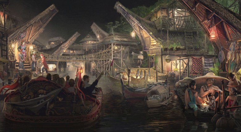 Les concepts art nous promettaient une magnifique réalisation qui restait dans l’esprit de la première version partie en fumée : le tracé de la nouvelle attraction est d’ailleurs identique et des éléments similaires s’y retrouvent.