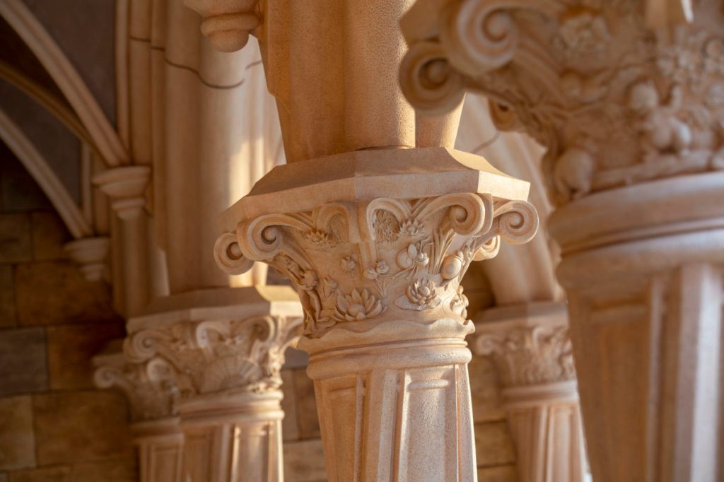 Plusieurs statues et artefacts sont disposés dans le château, qui rappellent toutes ces princesses, que ce soit au niveau des colonnes, des chandeliers ou du plafond étoilé.