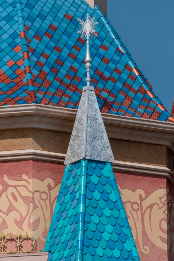 Chaque tourelle est inspirée d’une princesse ou d’une reine Disney. Découvrez ci-dessous toutes les flèches rappelant chacune d’entre elles.