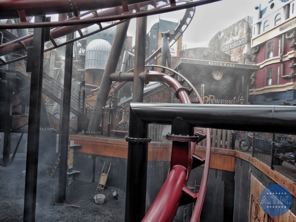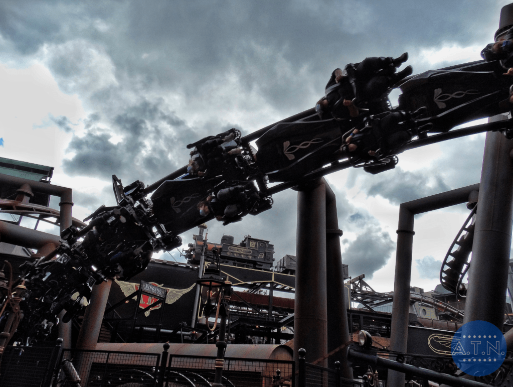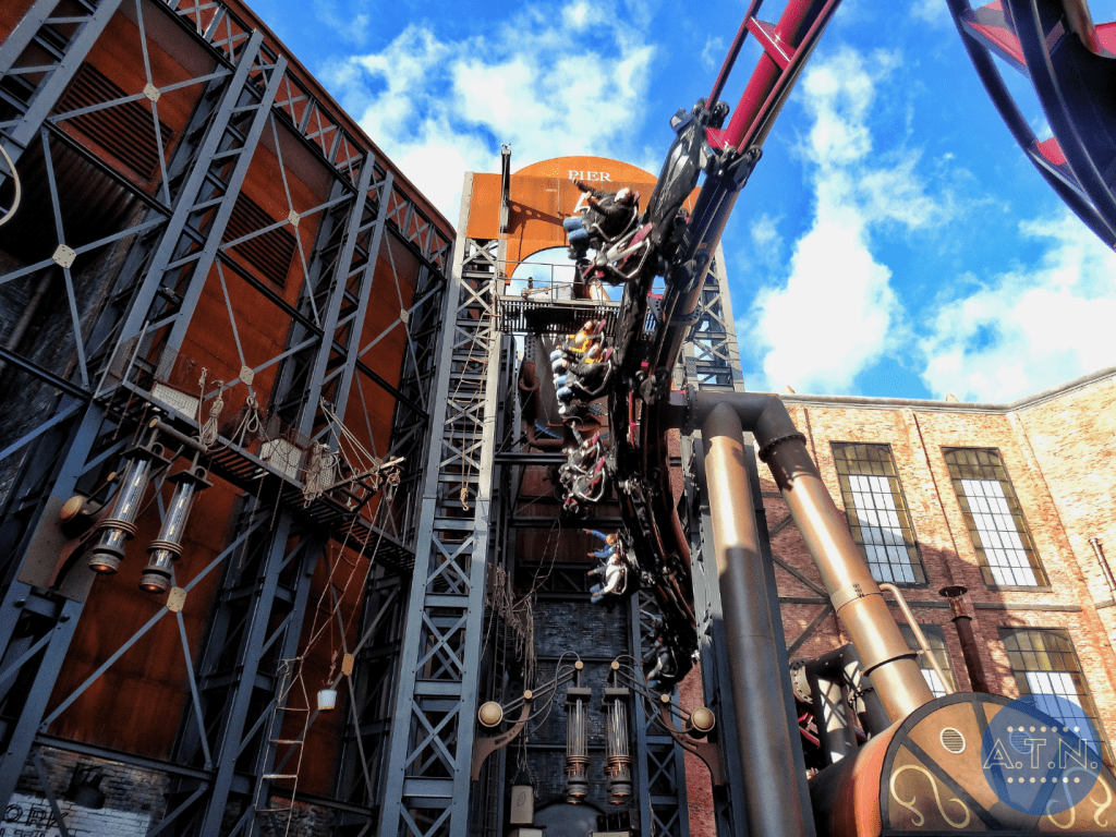 Le parcours est composé de 2 launchs et mesure 1 150 mètres de long. Qui dit flying coaster, signifie que les passagers sont allongés durant le tour, ce qui promet une expérience unique de vol au-dessus de la ville. Les visiteurs sont catapultés dans les airs, puis se laissent guider le long d’un coaster sinueux, rasant les murs des façades des usines de Rookburgh ainsi que le sol charbonneux, passant entre des colonnes et des turbines. Le coaster côtoie donc de près les chambres d’hôtel et les balcons de l’hôtel de la zone, offrant une expérience unique aux visiteurs.