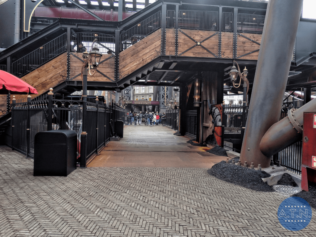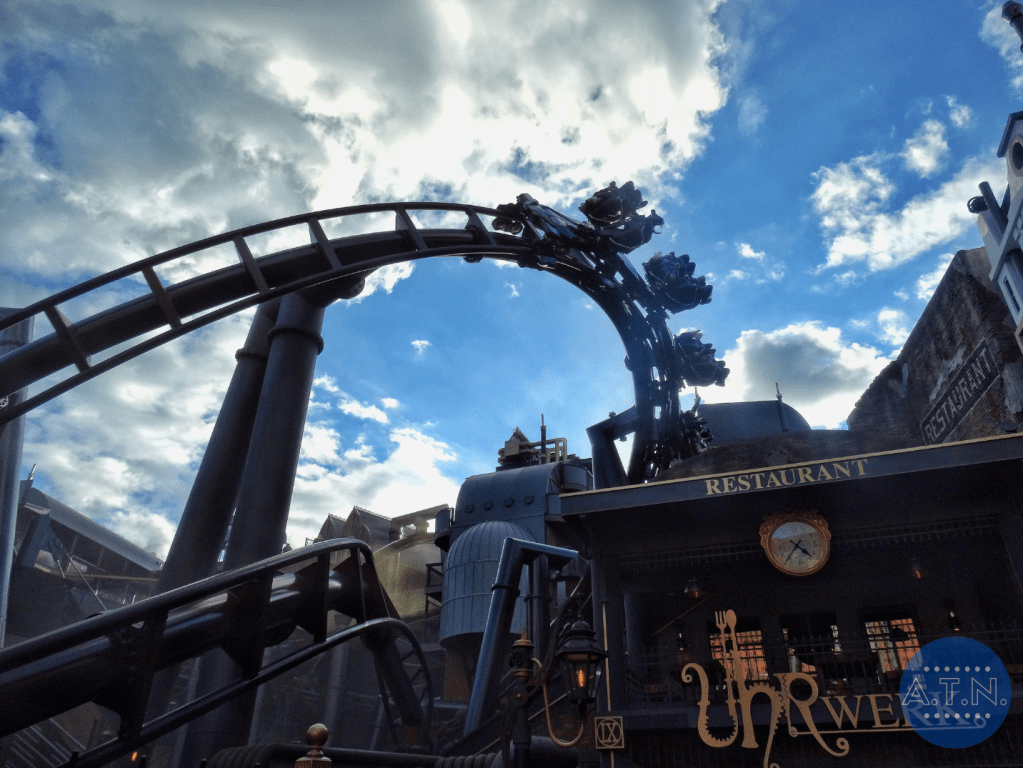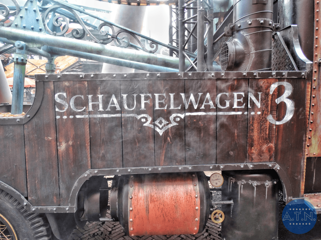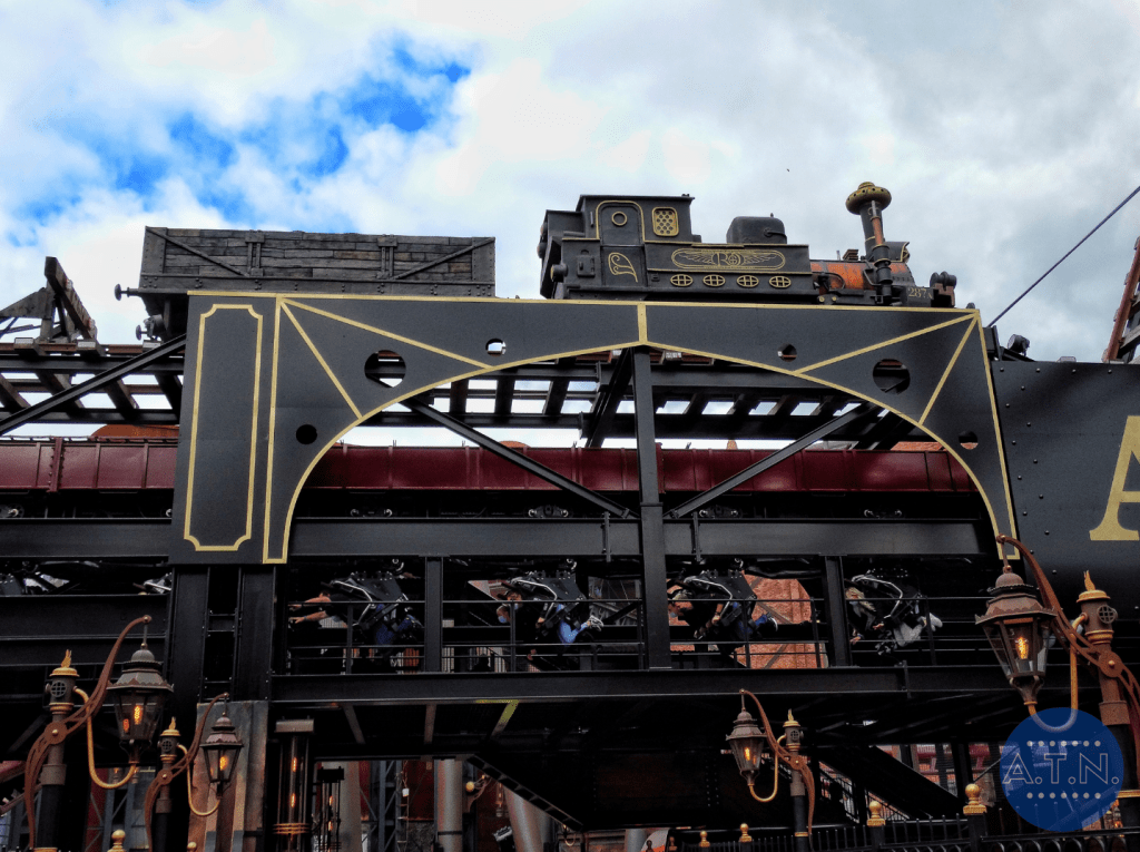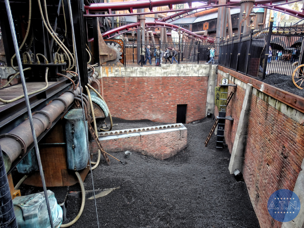 Durant la file d’attente, vous vous baladerez au sein de Rookburgh, admirant toute la zone grâce à des passerelles en hauteur et des endroits cachés. L’embarquement est très spécial car il vous faudra tout d’abord mettre toutes vos affaires dans des casiers pour éviter la chute de quoi que ce soit (vous passerez même sous un portique de sécurité, comme dans un aéroport) puis vous vous assiérez sur des sièges déplacés sur le côté des rails. En effet, les rails sont tournés dans votre direction lors de l’embarquement afin de faciliter votre installation et c’est après le pre-show que le rail se tourneront et que vous vous retrouverez en position allongée.