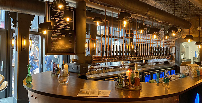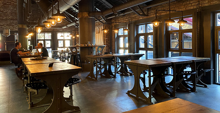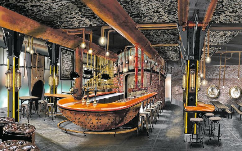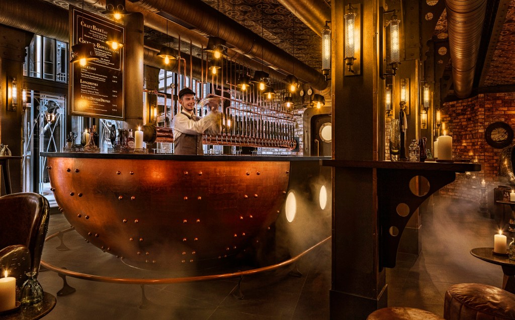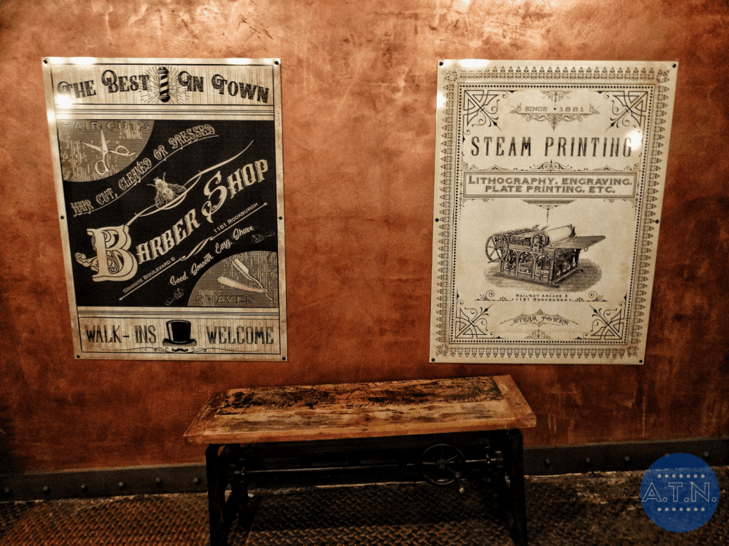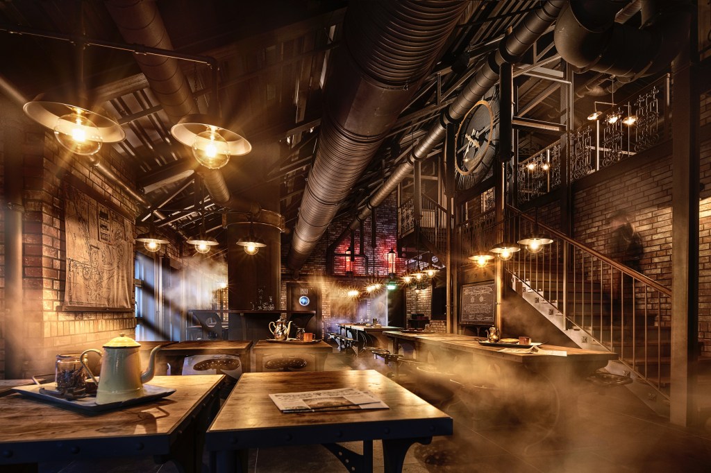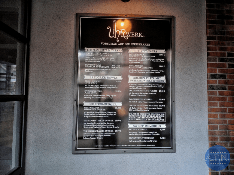 Des murs de brique, des tubes et du bois permettent une immersion totale des visiteurs. La pièce centrale de ce restaurant est une imposante horloge en or disposée en haut des escaliers en acier, au centre de celui-ci. Des plats copieux et faits maisons y sont servis et rappellent le thème de l’horlogerie.