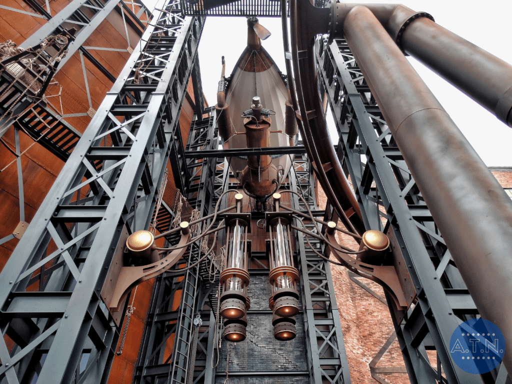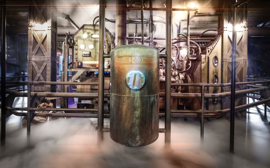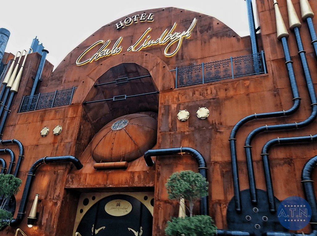 Ce troisième hôtel du parc est thématisé sur un style Steampunk tout comme la zone. La façade de l’hôtel ressemble à des usines d’une hauteur de 6 étages. Sa capacité est de 106 chambres, réparties en 5 bâtiments. Chaque chambre peut accommoder 2 visiteurs (2 lits simple), mais les chambres peuvent également être connectées pour accueillir de plus grands groupes : jusqu’à 16 visiteurs (soit 8 chambres connectées). Ces chambres sont appelées des Aeronaut-Tube Rooms (de forme cylindrique), pour permettre une immersion totale des visiteurs dans le monde de la révolution industrielle et des technologies.