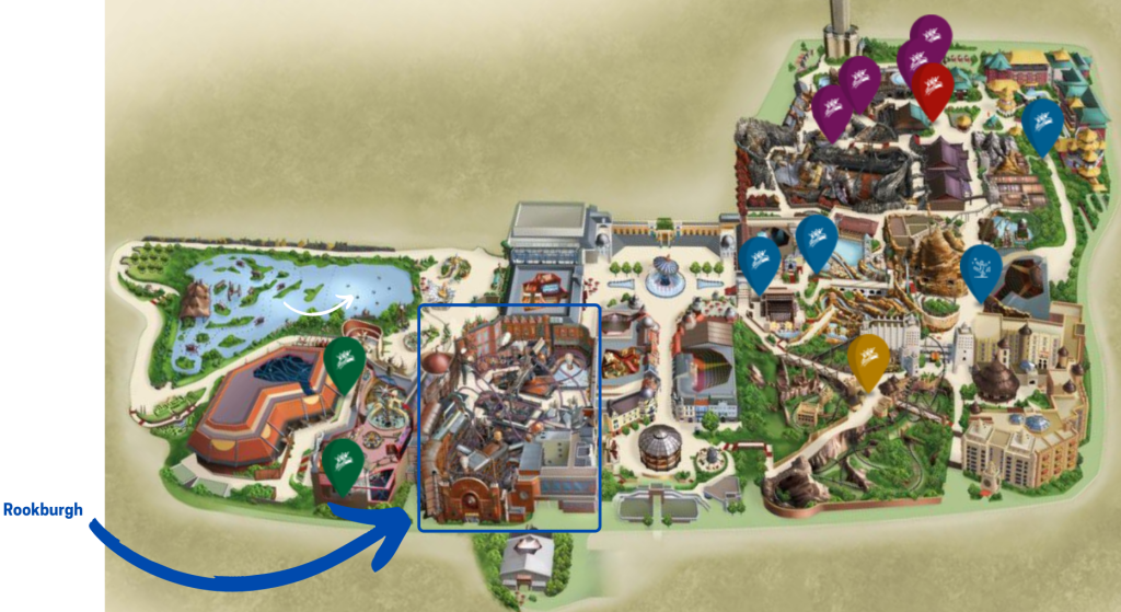 Phantasialand propose une unique expérience à ses visiteurs « de jour comme de nuit » à Rookburgh, grâce à la thématisation très poussée de l’univers, à l’imposant hôtel, au F.L.Y, ainsi qu’à tous les autres éléments qui composent ce land. Découvrez ce land ci-dessous au travers de notre galerie.