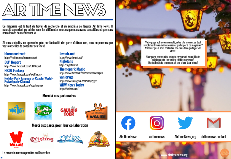Vous avez peur d’avoir loupé une information importante sur votre parc préféré ? Vous voulez la synthèse claire et la plus complète possible sur l’actualité des parcs du monde ? Vous ne vous intéressez qu’aux parcs d’Europe, d’Asie ou d’Amérique ? Notre équipe a rassemblé pour vous toutes les News de ce dernier mois dans le premier magazine francophone dédié aux parcs ! Vous pouvez télécharger sa version PDF ou le lire directement ci-dessous. Si vous voulez en savoir encore plus, les articles détaillés de notre site sont là pour ça ! C’est parti pour un petit tour d’horizon des dernières infos à ne pas manquer sur l’univers des parcs d’attractions ! Retrouvez l’édition du mois dernier juste ici.