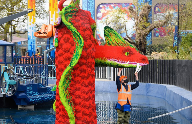 - Le Flowery Rhino : un rhinocéros fleuri (30.000 briques) ;