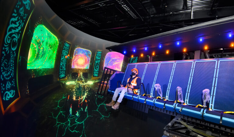 Un point de rencontre a été créé où l’on peut rencontrer Bits & Bobs, une toute petite licorne multicolore, que vous retrouverez également sur les écrans du Flying Theatre.