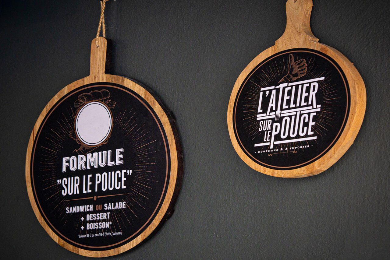 Collé à l’Atelier des Saveurs, l’Atelier sur le Pouce propose une vente à emporter, notamment des sandwichs et des salades. Il vend aussi des mets sucrés comme les Finger’lettes.