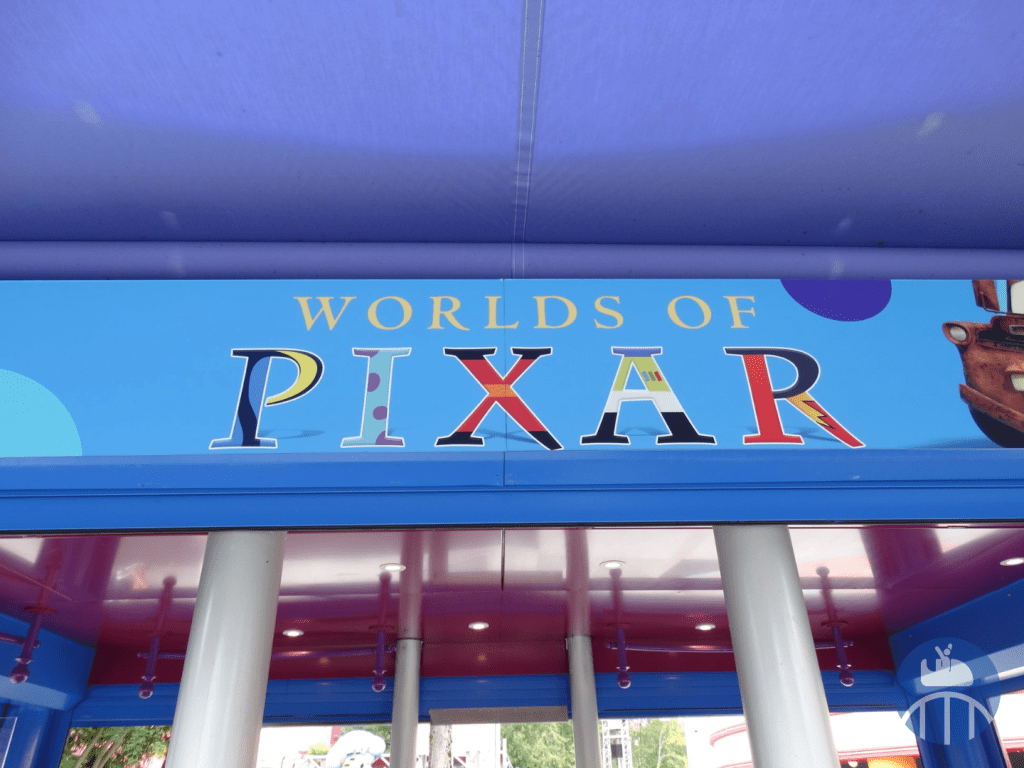 Pas de gros changements à signaler, si ce n’est la mise aux couleurs de Worlds of Pixar du kiosque souvenirs situé devant l’Animagique Theater, l’ajout de bannières ainsi que de points photos « instagrammables » (sans compter les goodies et autres spécialités culinaires estampillées Worlds of Pixar).