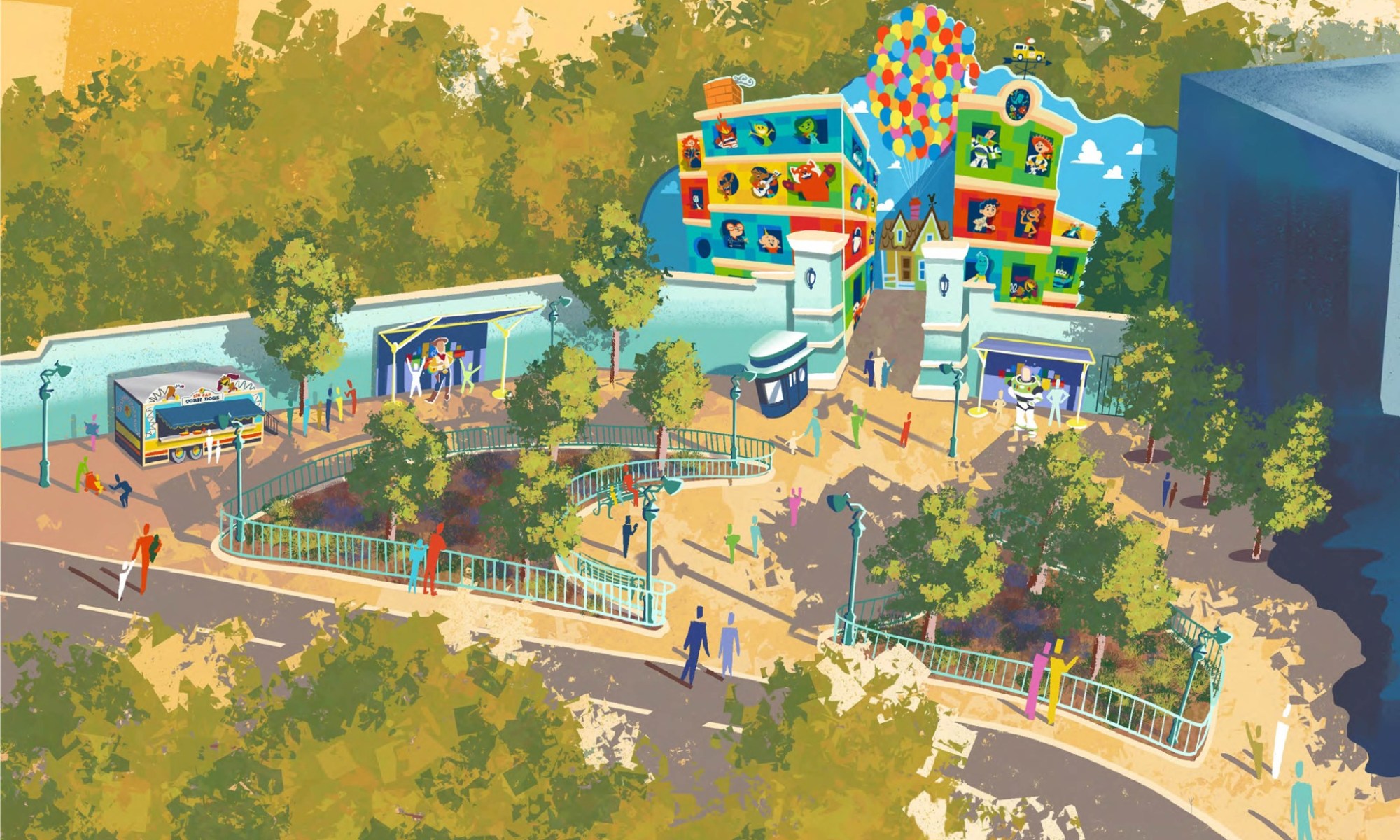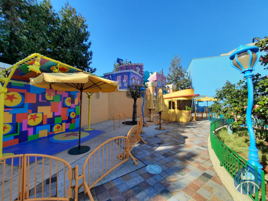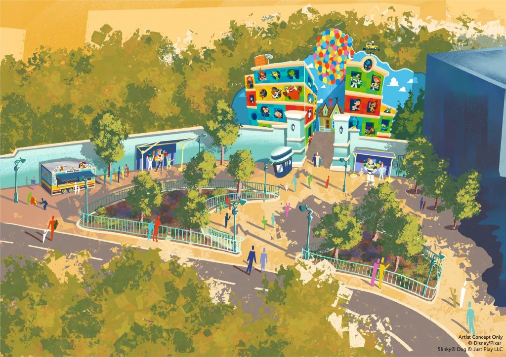 Une autre étape de cette nouvelle zone sera franchie en 2023 : l’espace de rencontre avec des personnages jusqu’ici dénommé Toon Plaza et ayant pour thème la ville cartoonesque de Mickey sera transformée en une expérience immersive rendant hommage aux films Pixar. Walt Disney Imagineering a en effet travaillé avec des artistes Pixar pour développer un espace fantaisiste avec une nouvelle toile de fond surélevée mettant notamment en vedette Ember et Wade du prochain long métrage Elemental de Disney et Pixar ! En outre, le concept art divulgué laisse suggérer la thématisation du Food Truck situé à cet endroit qui mettrait dorénavant Zig-Zag de Toy Story à l’honneur.
