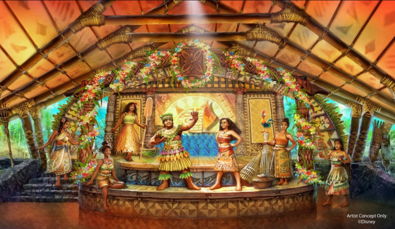 Elle concerne plus particulièrement le Great Ceremonial House (le Hall d’entrée), le restaurant ‘Ohana et les chambres afin d’y inclure le thème de Vaiana, de l’Océan Pacifique et de l’île de Motunui. Une refonte a également été effectuée pour l’entrée et la station de Monorail selon le concept art diffusé ci-dessus.
