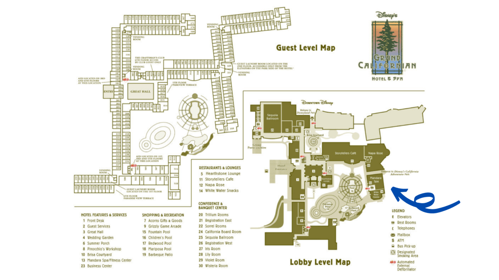 Le Disney’s Tenaya Stone Spa est en fait venu remplacer le Mandara Spa, qui n’était pas géré par Disney et qui a fermé ses portes en 2019. Il est donc situé près du GCH Craftman Bar & Grill et à quelques pas de l’entrée du parc Disney California Adventure dédiée aux résidents de l’hôtel.