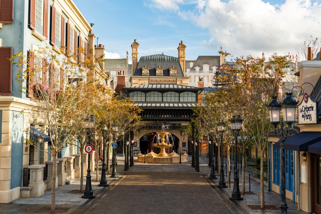 L’attraction et l’aspect général de l’extérieur du ride ressemblent énormément à la version parisienne. On y retrouve la fontaine, la verrière ou encore le panneau de Gusteau.