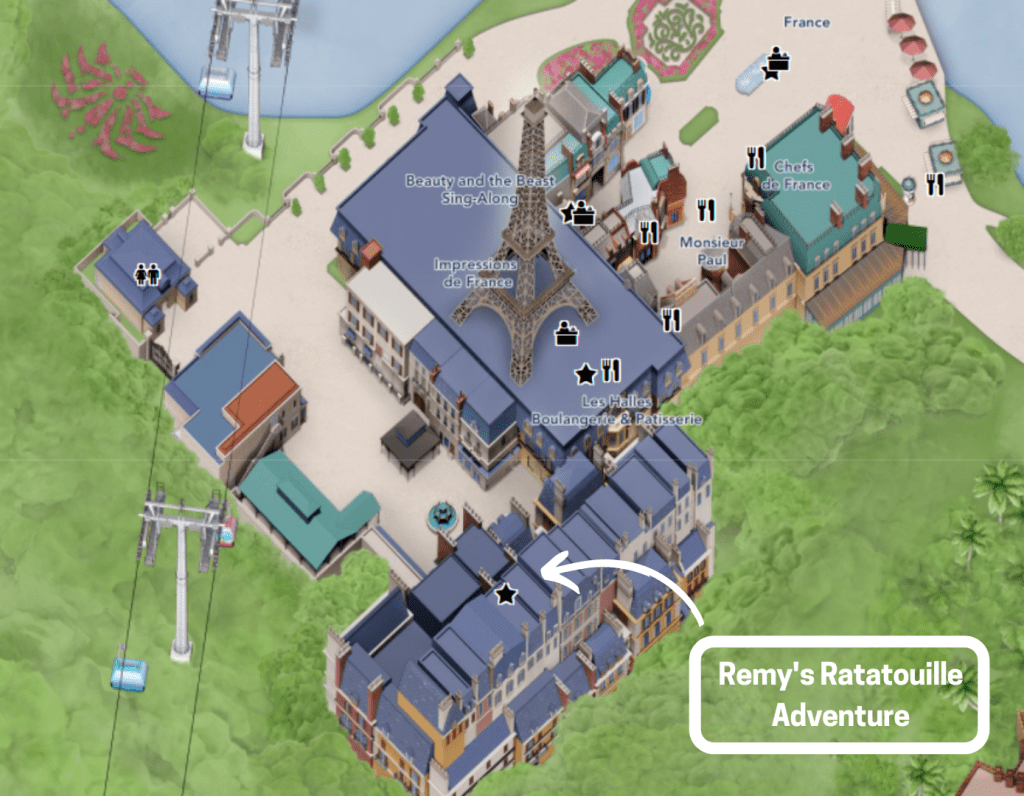 Dans le cadre du plan de transformation du parc, le Pavillon France s’est bien développé : il a accueilli un show, Beauty and the Beast Sing-Along, début 2020, ainsi que cette attraction basée sur Ratatouille et un restaurant, La Crêperie de Paris, en 2021.