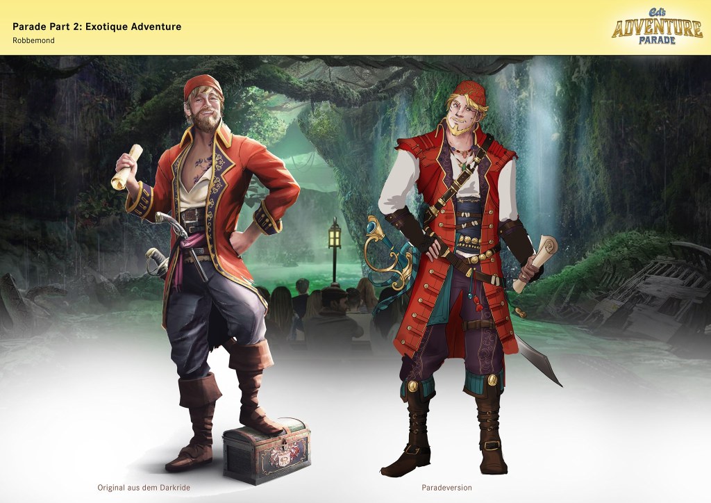 Les performers sont ainsi habillés de nouveaux costumes : au-delà du côté résolument Steampunk de la nouvelle parade, on peut également y découvrir Bartholomeus van Robbemond, fondateur de l’Adventure Club of Europe, l’univers étendu d’Europa-Park, et héros du Piraten in Batavia fraichement reconstruit.