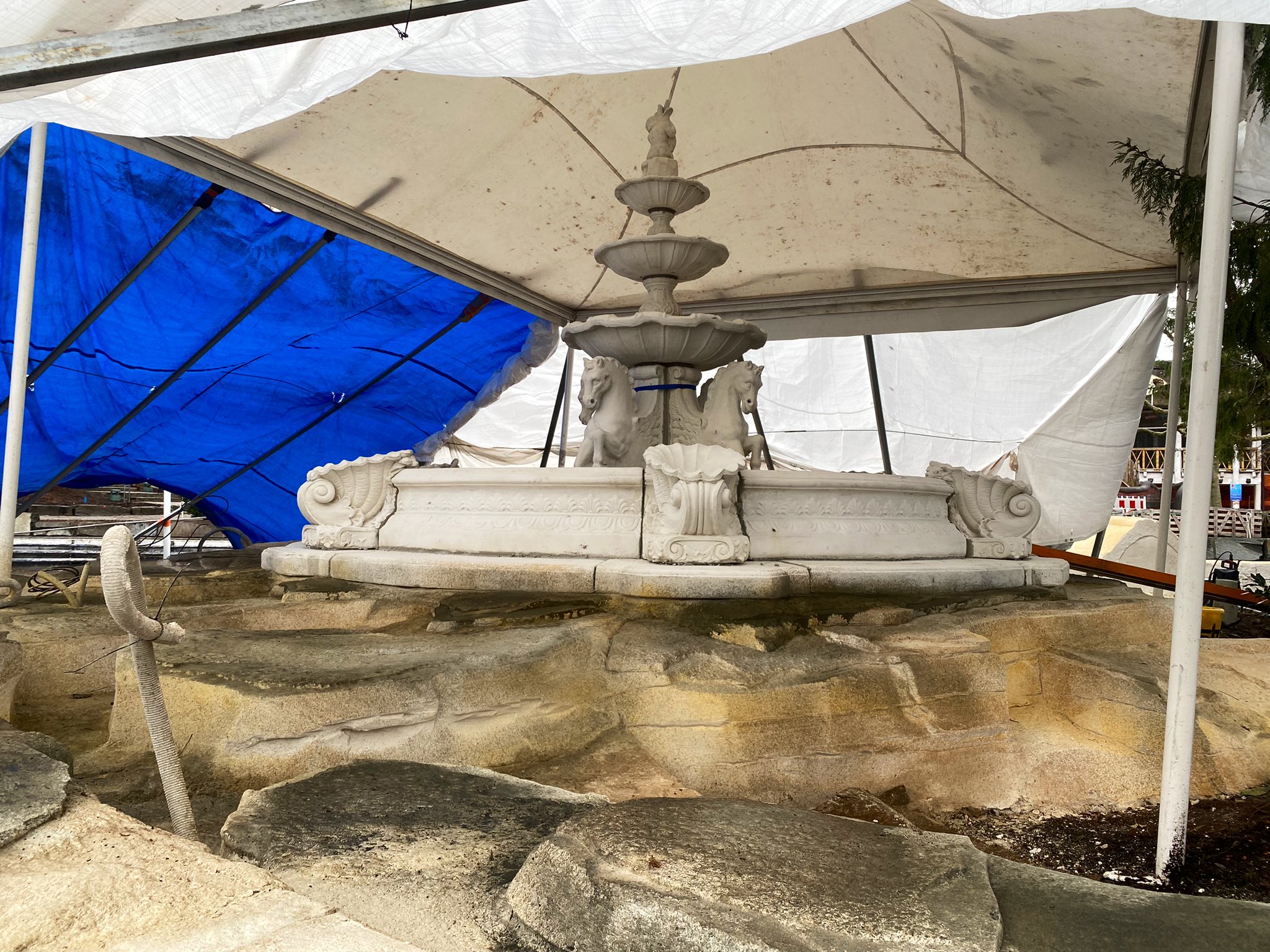 Si l’attraction a ouvert au public en même temps que le parc, le 19 Mars 2022, elle n’est cependant pas totalement terminée puisqu’une nouvelle gare sera construite et que ses bateaux seront changés dans une seconde phase du projet, en 2023. Pour cette saison, nous avons donc eu droit à une version hybride : des radeaux de fortune déambulent en effet dans des jardins impériaux… Il faudra encore attendre un peu pour la deuxième phase des travaux…