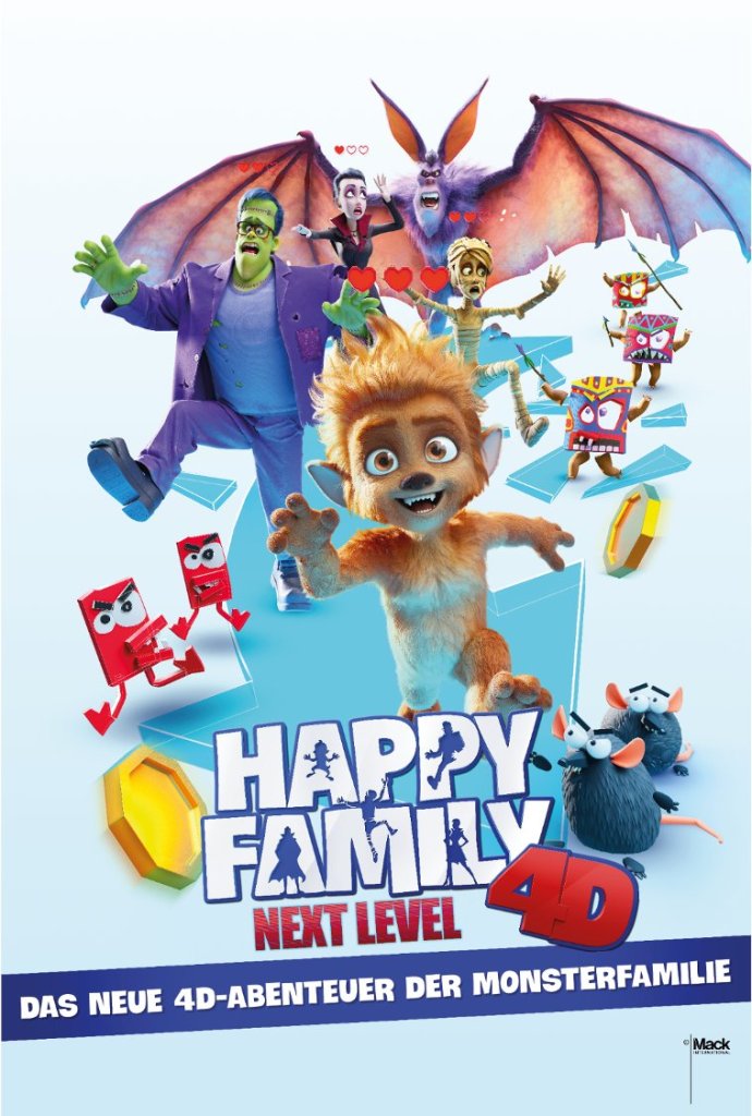 Depuis le 19 Mars 2022, Europa-Park propose un tout nouveau film au Magic Cinema 4D du Quartier français : Happy Family Next Level 4D. Nouvelle production MackMedia, cette aventure inédite est présentée en exclusivité au parc allemand.