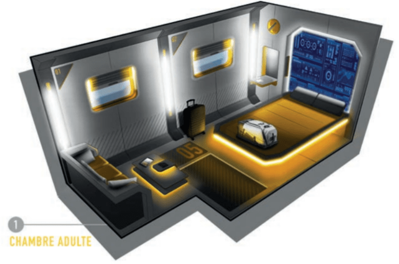 Les visiteurs dorment dans des chambres semblables à des vaisseaux spatiaux et prévus pour 4 personnes maximum.
