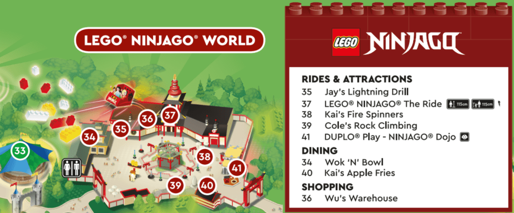 LEGO NINJAGO World est l’un des 7 lands de LEGOLAND Korea et basé sur la franchise Ninjago. Cette zone est composée d’une attraction et d’aires de jeux pour plonger les visiteurs dans le monde des ninjas et du Spinjitzu.