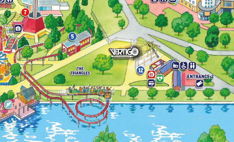 Notons que, pour faire place à cette zone, l’attraction Pandemonium a quitté le parc fin 2021. De type Ranger et construite par la société Fabbri en 2004, elle était localisée à l’une des entrées de la zone (près de la tour de chute).