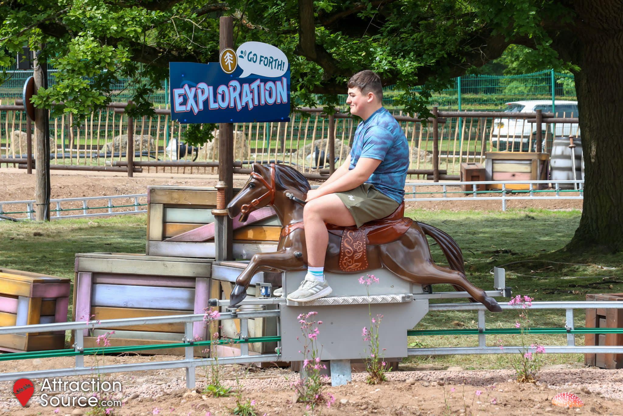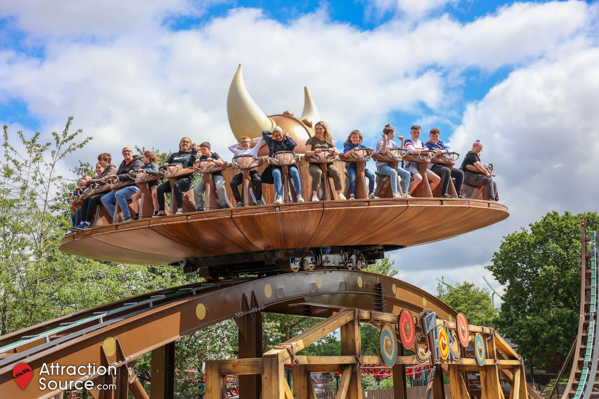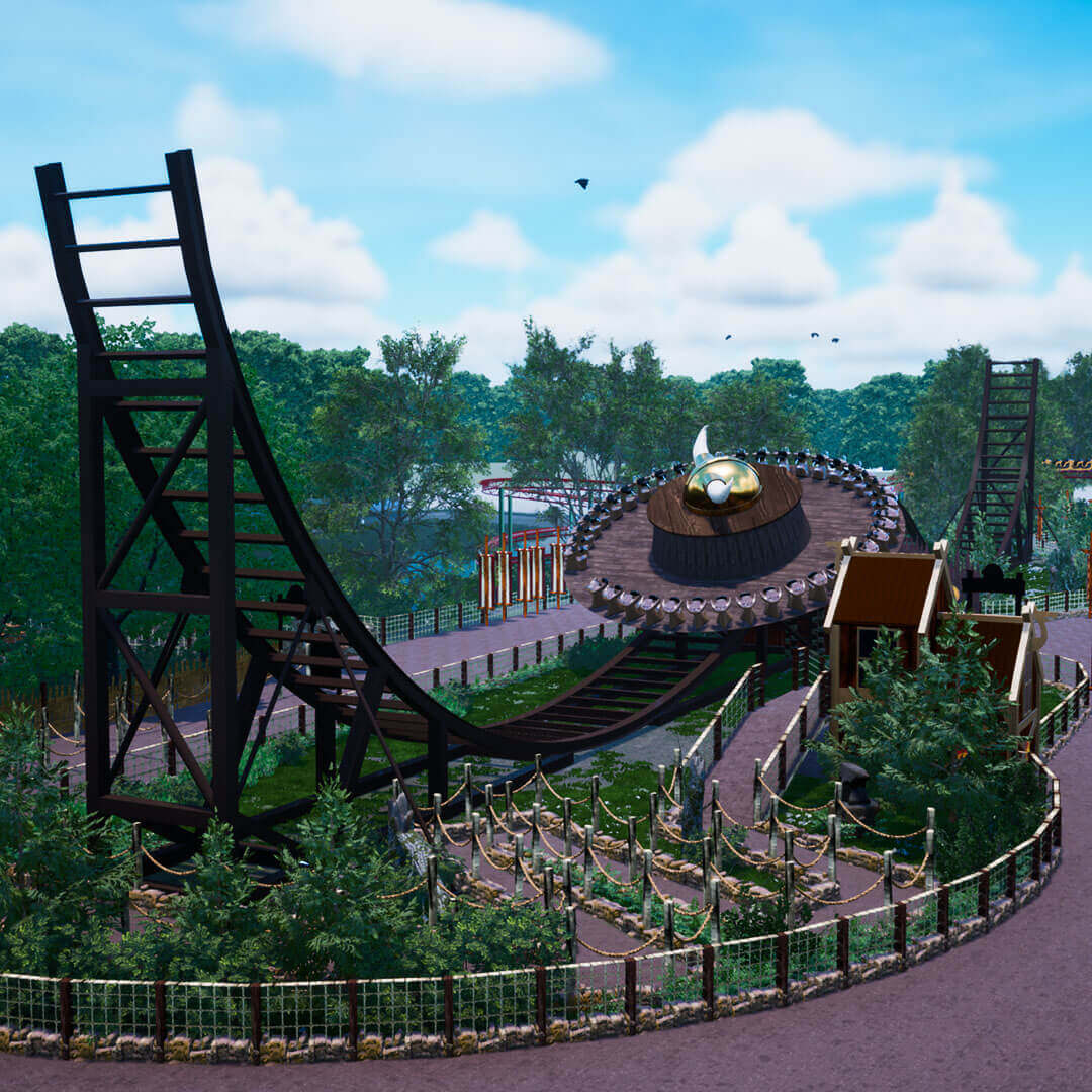 La quatrième attraction de la zone n’est pas nouvelle. Il s’agit en effet de la rethématisation du Buffalo Rollercoaster, une attraction inaugurée en 1987 et un classique des habitués du parc. Construite par Zamperla, c’est un Powered Coaster qui peut accueillir 32 passagers par train et qui, depuis son ouverture, arborait un thème indien-nord américain.