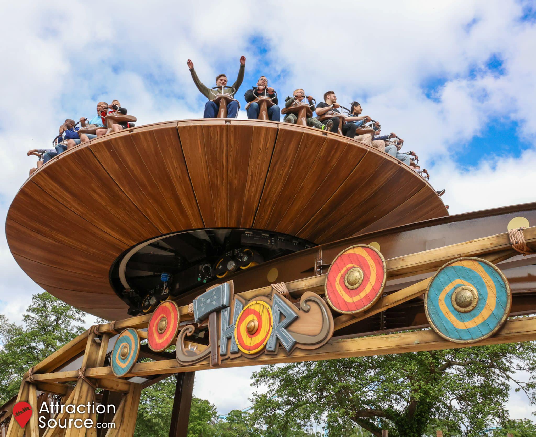 La première nouvelle attraction est un Disk’o Coaster de la société Zamperla nommé Thor (le dieu du Tonnerre dans la mythologie nordique). Une plateforme ronde, sur laquelle les passagers sont assis sur le pourtour, est située sur un rail formant un W où elle fait des va-et-vient tout en tournant sur elle-même. Ce type d’attraction est très répandu dans les parcs à thèmes, comme à Holiday Park depuis 2021.