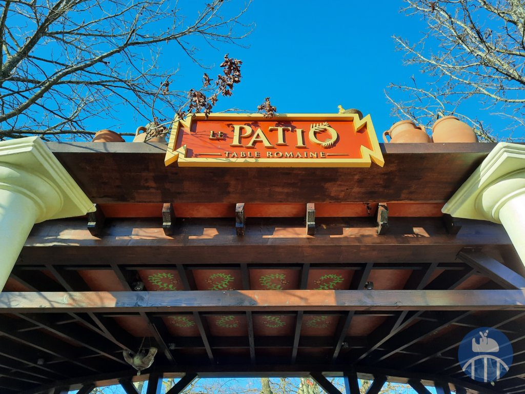 Le Patio est situé en face du restaurant Aux Fastes de Rome, au même niveau que l’attraction Le Petit Train. Il remplace un bassin de bateaux télécommandés dans la zone L’Empire Romain.