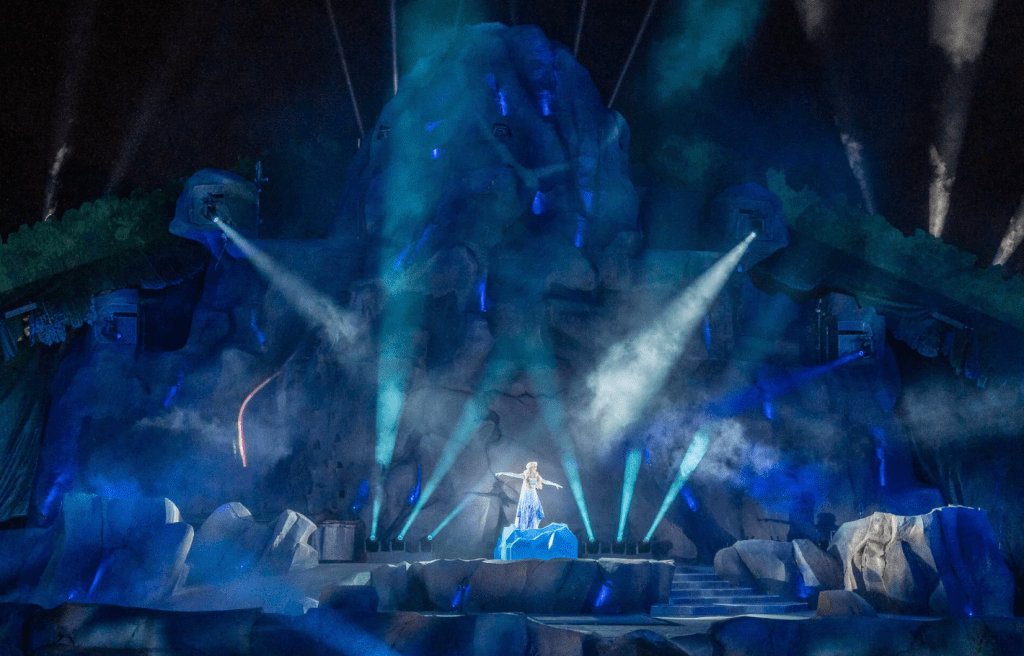 La Reine Elsa sort ensuite et chante Show Yourself, tiré de La Reine des Neiges II, entourée d’une foule d’effets spéciaux, qui rendent son apparition grandiose.