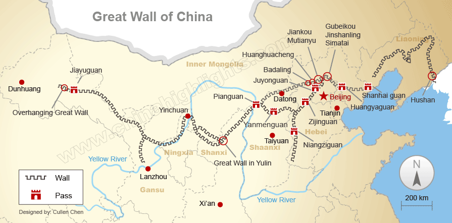 Ce parc devrait se situer au pied de la Grande Muraille de Chine, plus précisément à Qinhuangdao, une ville portuaire située à l’Est de Pékin. Qinhuangdao signifie l’île de l’Empereur Qin Shi Huang, personnage historique fondateur de la première dynastie impériale de la Chine, sous le règne duquel la construction de la muraille a débuté. Notons que dans cette ville se trouve également la Passe de Shanghai, un des bouts de la muraille (Shanghai guan sur l’image ci-dessous).