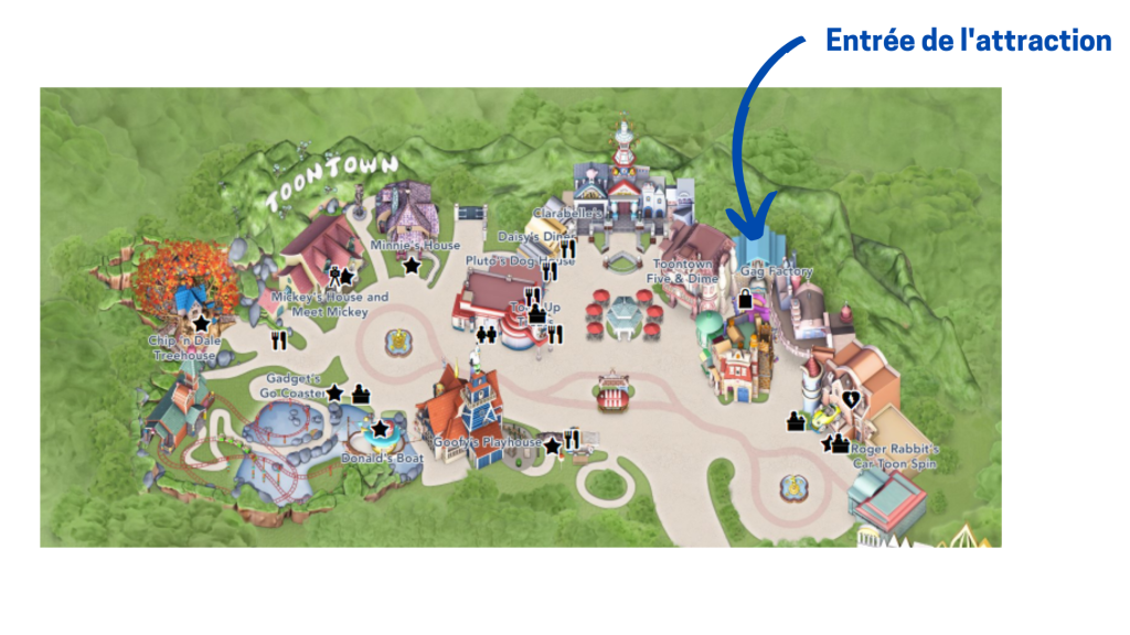 L’attraction est située dans Mickey’s Toontown (qui fera également peau neuve en 2023), la ville cartoon de Mickey située au fond du Disneyland Park, et a ouvert le 27 Janvier 2023. L’entrée est située à la place des boutiques Gag Factory et ToonTown Five & Dime, dans un tout nouveau haut lieu de ToonTown, El CapiTOON Theater, et l’attraction en elle-même a pris place dans un nouveau bâtiment situé derrière Toontown, dans les backstages, en lieu et place des infrastructures abritant jusqu’alors l’Entertainment Production Center et qui ont aussi été détruites.