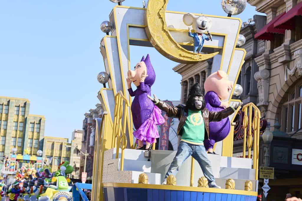 Le char suivant, en forme de scène, représente le dessin animé Tous en Scène, avec Johnny, Rosita et Gunter.
