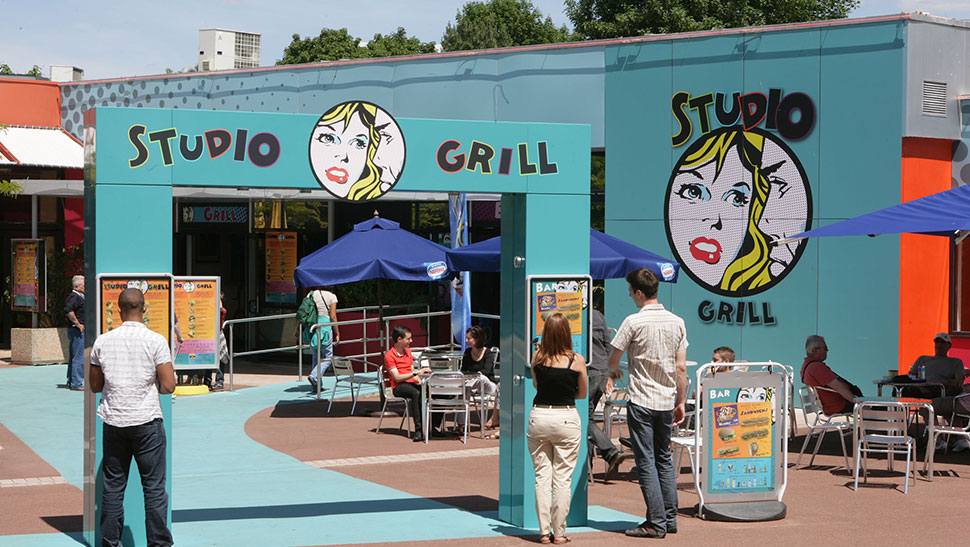 Le Studio Grill était l’un des 10 restaurants du parc. Construit en 1990, il adopte ce nom en 1998. Partageant le même bâtiment que le restaurant l’Atelier des Saveurs et des stands l’Atelier sur le Pouce et l’Atelier des Glaces (appelé le Complexe de l’Europe), il se situe près des attractions Objectif Mars, Chasseurs de Tornades et du pavillon de l’Imagination. Il revêtait une thématisation années 50 et propose un self service servant des salades, des burgers et des grillades. Il a fermé ses portes le 4 Septembre 2022.
