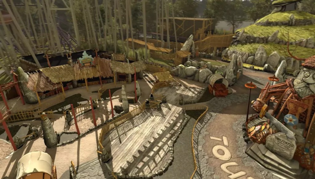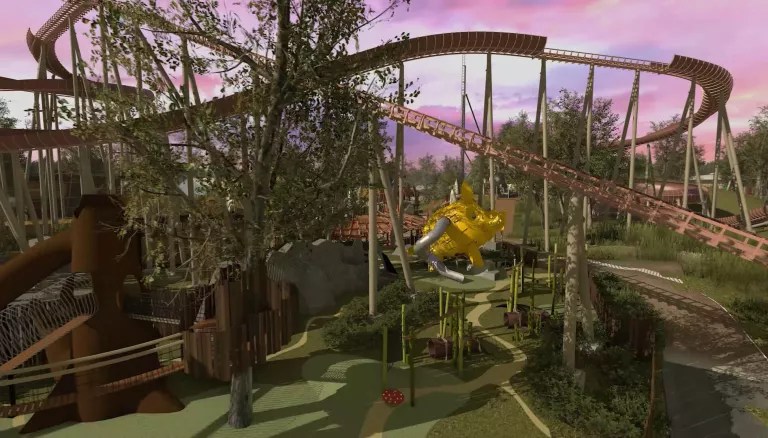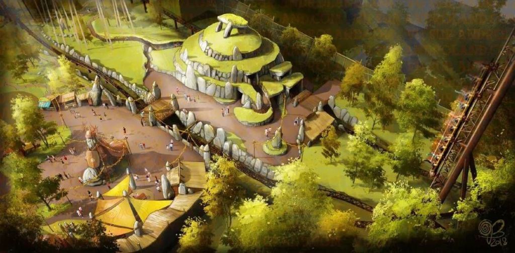 L’inauguration de la zone était prévue en 2021, mais le parc a décidé de la repousser à 2022, afin de mener une étude écologique poussée car beaucoup d’arbres se trouvent dans la zone de construction (il faut donc vérifier si l’abattage de certains arbres ne dérèglera pas l’écosystème de la zone). Le Parc Astérix fait en effet très attention à l’écosystème qui l’entoure et fait son maximum pour s’impliquer dans le développement durable (comme avec son hôtel Les Quais de Lutèce, ouvert en 2020) Son ouverture a par la suite été de nouveau repoussée à 2023 à cause du ralentissement des travaux suite à la crise sanitaire.