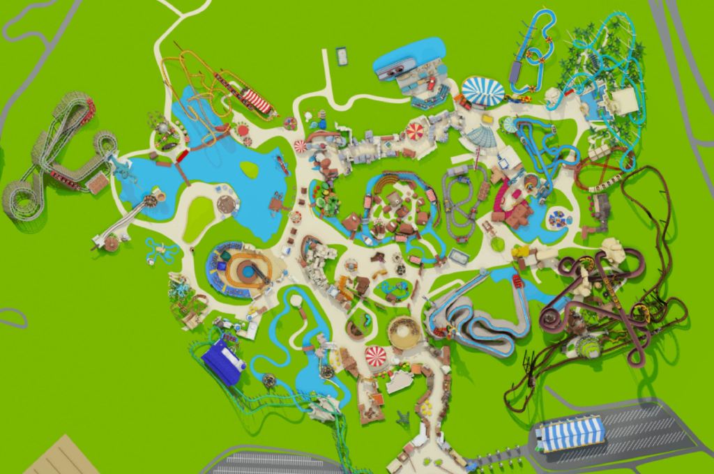 Un Multi Launch Coaster, qui a pour nom Toutatis, a été érigé dans cette zone et en est la pièce centrale. Il est composé de 4 launch (zones de lancement) qui propulsent les wagons à toute allure sur le tracé du coaster.