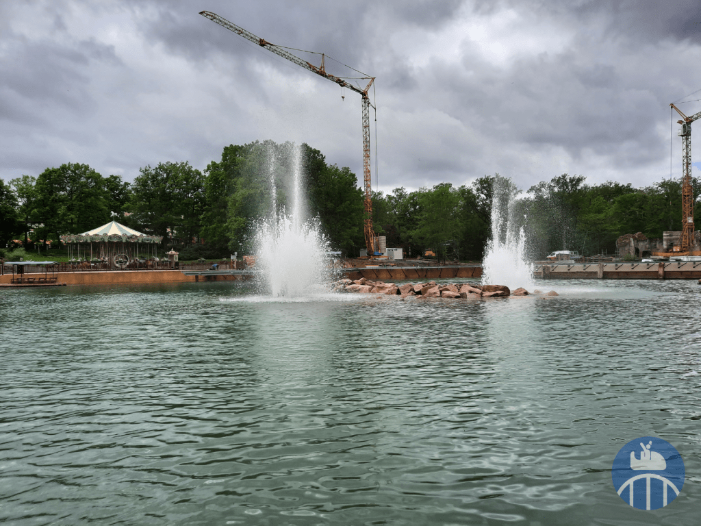 Cette attraction occupe un bassin artificiel (nommé Lac des Chercheurs d’Or), situé au fond du parc.