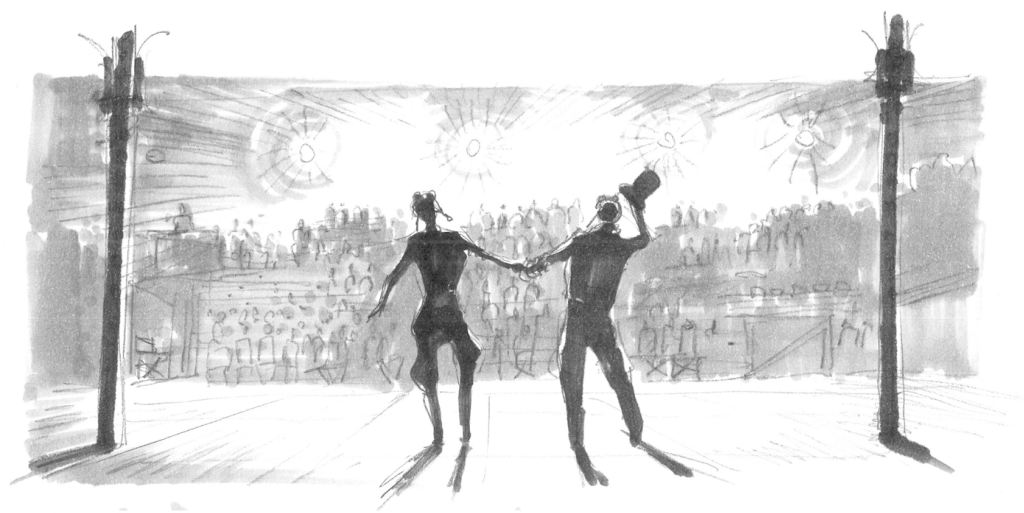 Préparé par le parc depuis plus 3 ans, Le Mime et l’Étoile vous plonge dans une création « extraordinairement ambitieuse ». L’entièreté des décors, des accessoires, des costumes, des maquillages, des perruques et autres éléments qui composent le spectacle forment une palette de gris, pour vous plonger dans le cinéma en noir et blanc de la Belle Époque sans utiliser d’artifices.