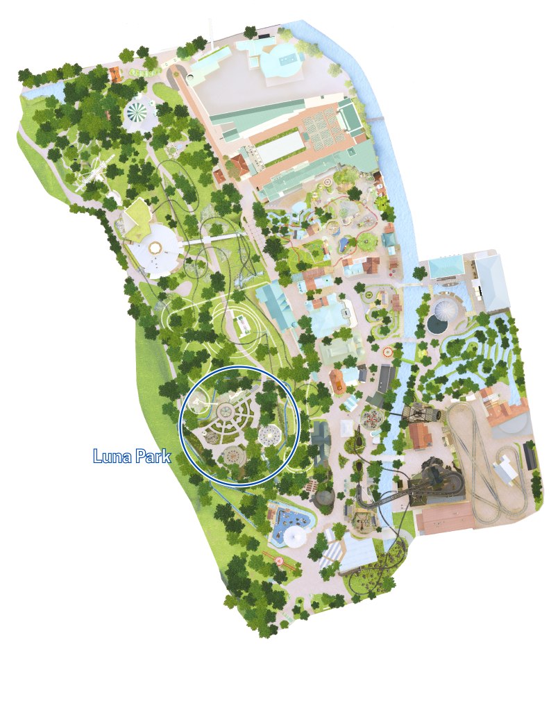 En 2022, Liseberg a ouvert deux nouvelles attractions au sein d’une zone rebaptisée Luna Park, en référence aux parcs d’attractions du même nom. Turbo et Tempus, les nouveautés, ont rejoint deux attractions, une aire de jeux et un kiosque de restauration pour former cette zone thématique.
