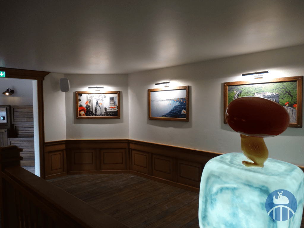 Les visiteurs sortent par une salle présentant des tableaux de paysages envahis de Mushies, représentant les villes/pays d’où sont originaires les créateurs de l’attraction (Bruxelles, Canada, Vienne, Saint-Malo…). On trouve également une statue d’un Mushie sur un glaçon.