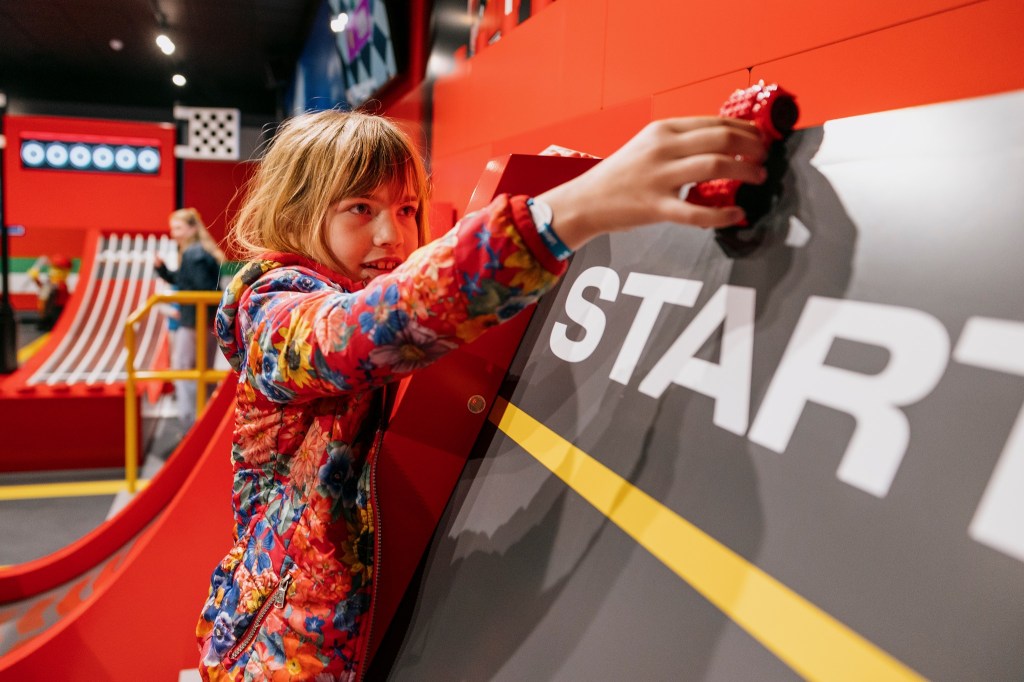 À l’intérieur, les enfants peuvent construire leur propre modèle de voiture Ferrari en LEGO et la tester sur des pistes de course. Ils peuvent également créer une voiture via des écrans pour qu’elle soit ensuite projetée digitalement sur une piste de course LEGO rappelant la Pista di Fiorano (la piste d’essais privée officielle de Ferrari). Enfin, les plus petits peuvent également construire leur propre voiture avec des LEGO DUPLO, des briques adaptées aux enfants jusqu’à 5 ans.