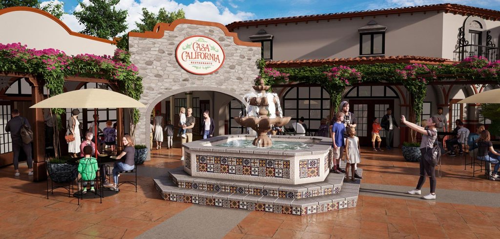 Le marché Casa California et les jeux d’arcade Casa Arcade sont devenus un restaurant, Casa California (servant des plats mexicains tels que des burritos et des tacos), avec des zones ombragées
