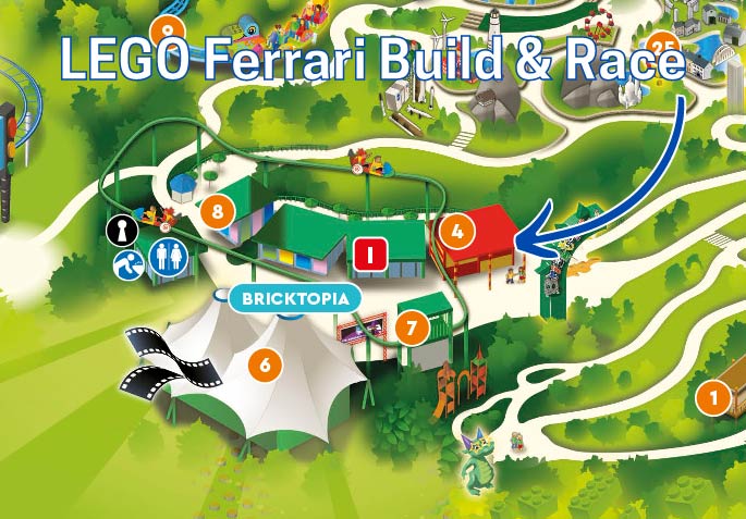 LEGO Ferrari Build & Race propose 3 zones interactives avec des activités à la pointe de la technologie. Cet espace remplace LEGO Reef, un autre espace de création centré sur les poissons (ouvert en 2018 et fermé fin 2022) dans la zone Bricktopia du parc.