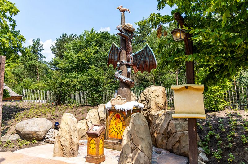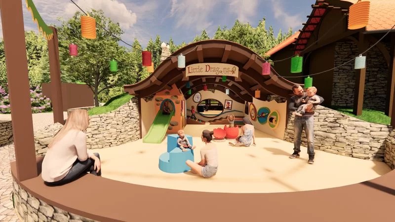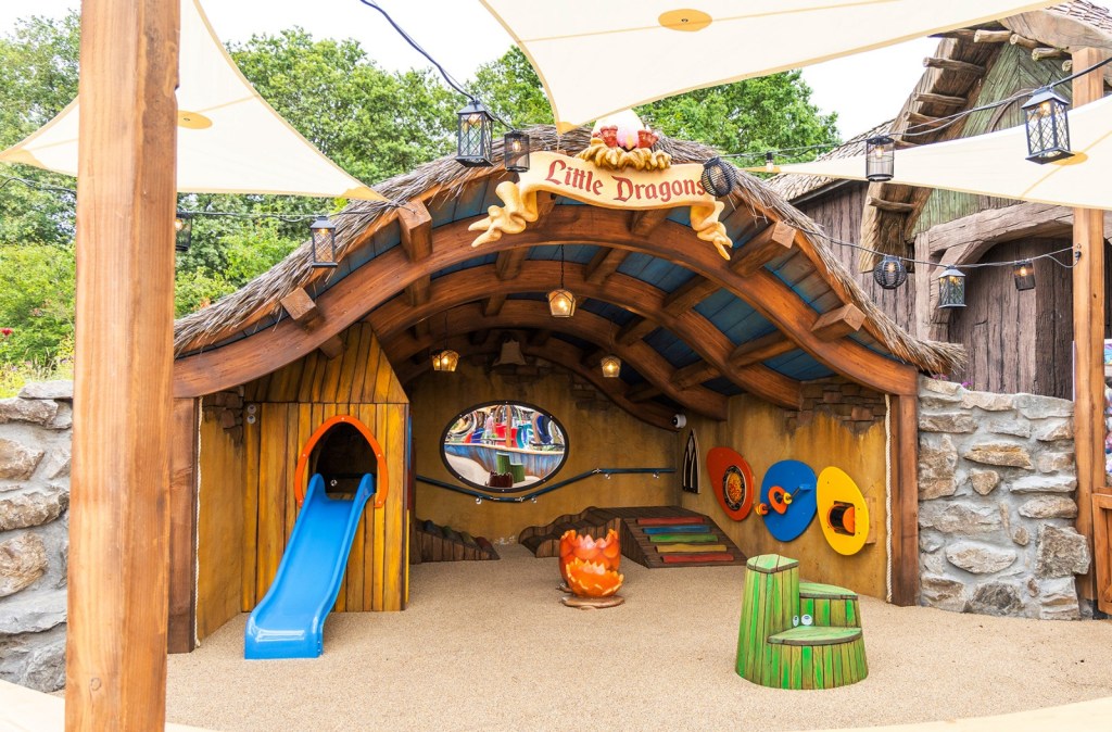 Cette deuxième aire de jeux (un nid de dragons), de 40 mètres carrés, est réservée aux enfants de 0 à 3 ans. Semi-couverte, elle est située entre le restaurant The Flaming Feather et l’attraction Garden Tour (à la place de l’aire de jeux Arthur’s Tournament Training, qui a été déplacée de l’autre côté du restaurant). Tout est sécurisé pour ces petits visiteurs et ils peuvent s’amuser sur de nombreuses petites structures : des rochers, des toboggans et des panneaux tactiles et ludiques.
