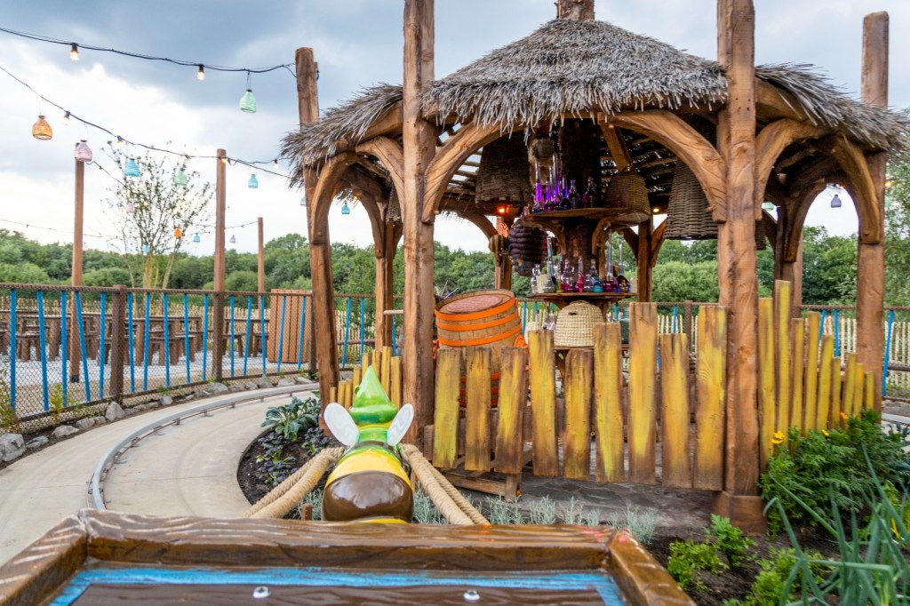 Outre ces deux personnages, la thématisation a été renforcée dans la zone, avec notamment l’arrivée d’éléments interactifs dont une tour de 6.50 mètres (face au restaurant) où est perché Spicy Pete (un dragon cuisinier qui fera tomber des ingrédients de temps en temps) et l’apparition d’un Swamp Dragon dans le lac (mesurant 9 mètres de long). Notons que les éléments de thématisation et de décors ont été réalisés par les sociétés Petro Art (lumières, animatroniques…) et Themics Philippines (roches).